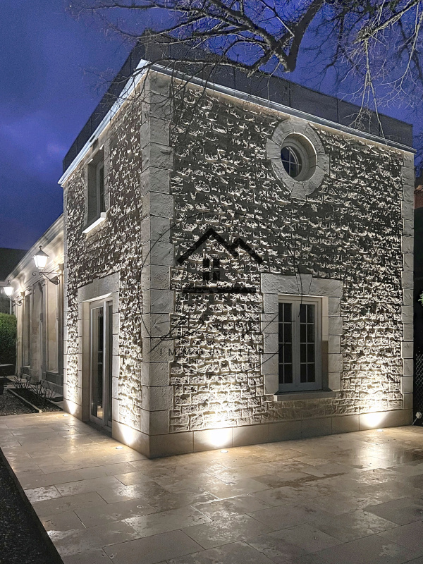 Au rez-de-chaussée , elle se compose d’une cuisine semi-ouverte sur le salon/séjour avec une cheminée , d’une salle d’eau et de WC séparés .