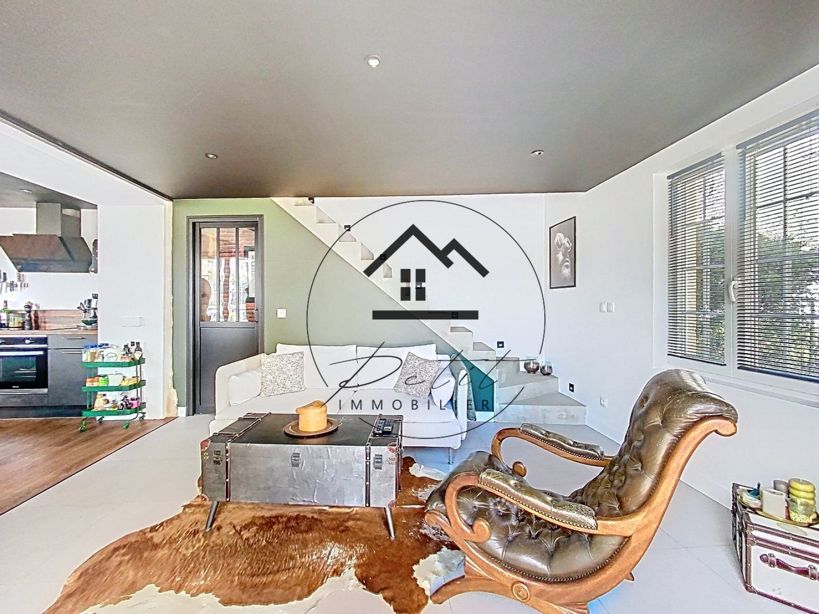 Le bien s’ouvre sur une belle pièce de vie comprenant un séjour lumineux et une cuisine aménagée et équipée, dans un esprit convivial et chaleureux.
