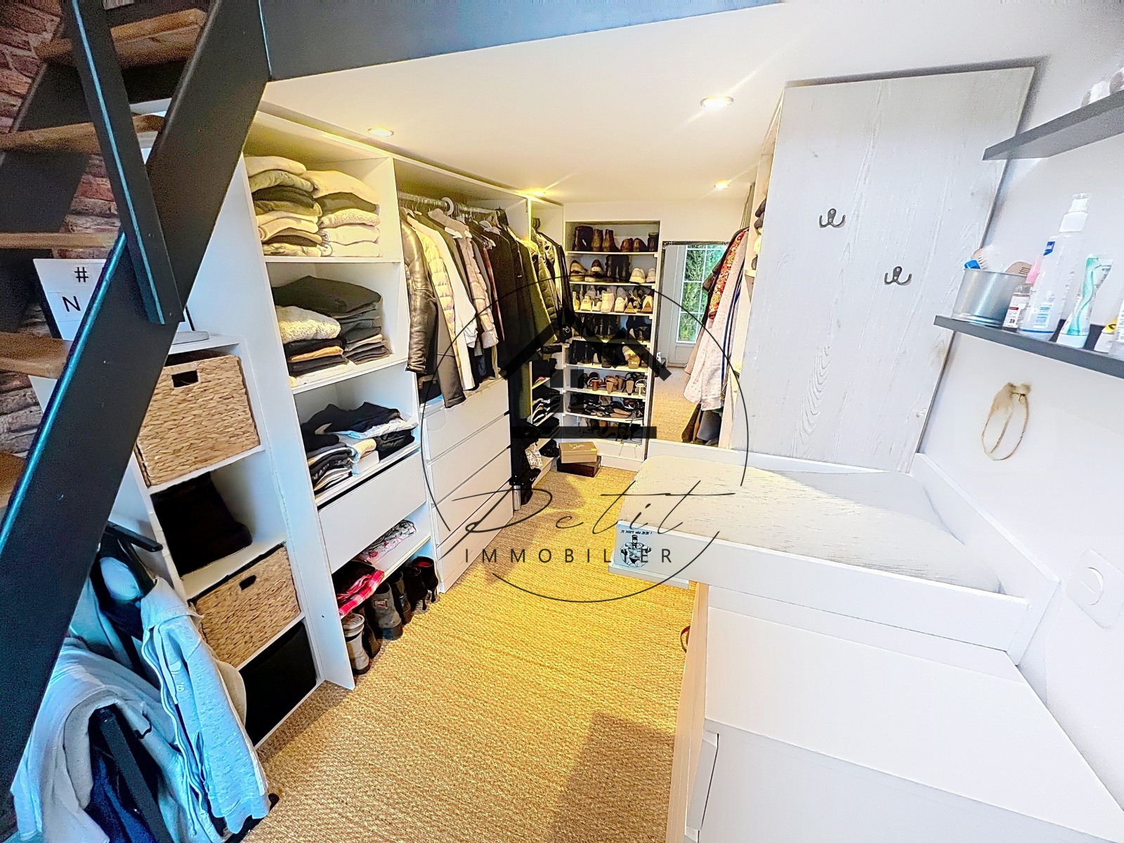 Le rez-de-chaussée offre également un dégagement desservant une magnifique salle d’eau avec WC, ainsi qu’un dressing pouvant être aménagé en chambre, bénéficiant d’un bel espace mezzanine.