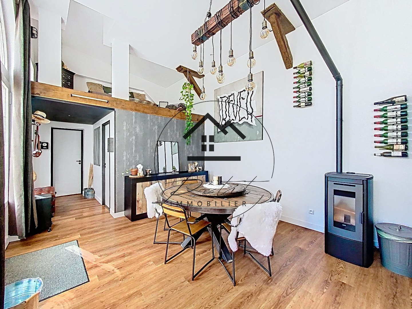 La pièce à vivre est sublimée par deux superbes mezzanines, apportant volume, cachet et de multiples possibilités d’aménagement.