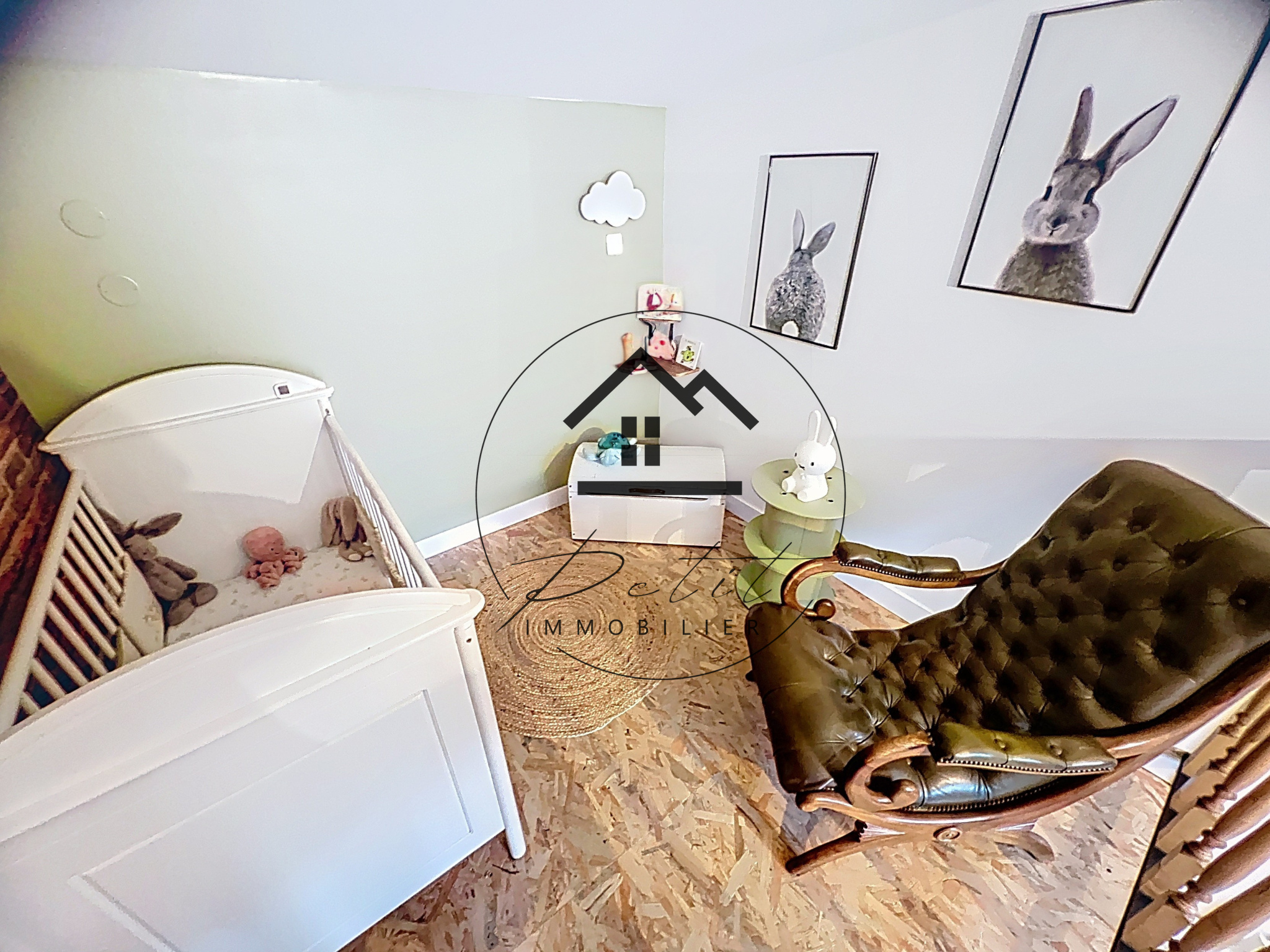 À l’étage, vous découvrirez une très belle chambre, cosy et pleine de charme.