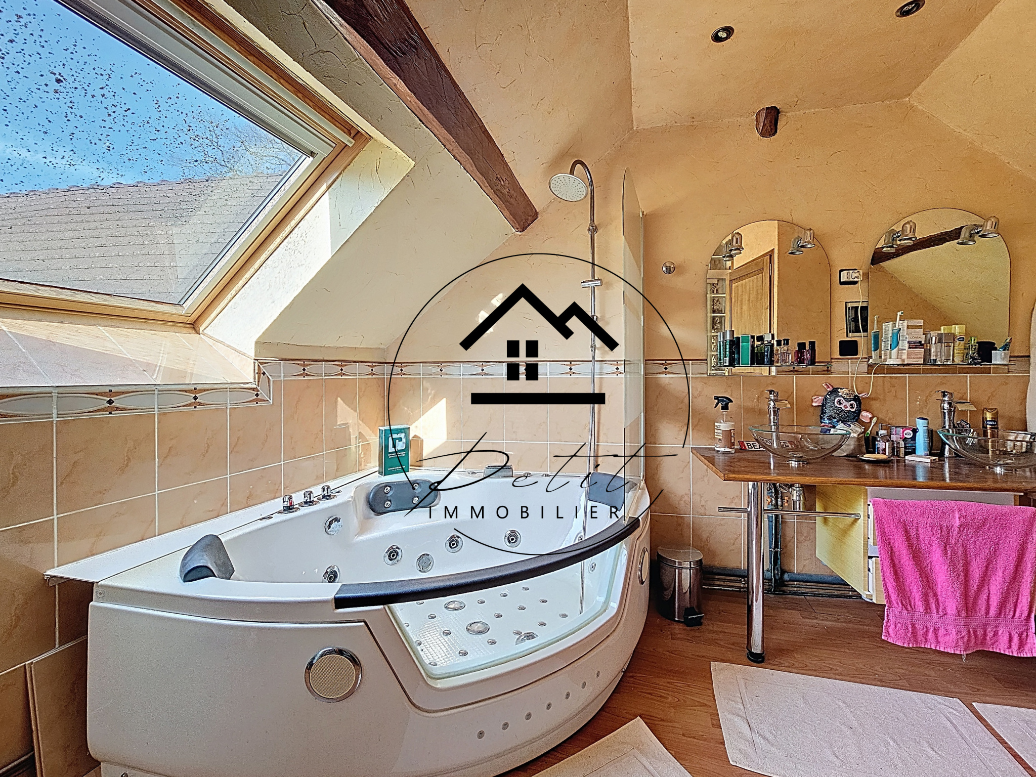 Au rez-de-chaussée, vous découvrirez une cuisine aménagée, un salon, une salle à manger, ainsi qu’un WC indépendant. Une salle de bain équipée à la fois d’une douche et d’une baignoire complète également ce niveau.