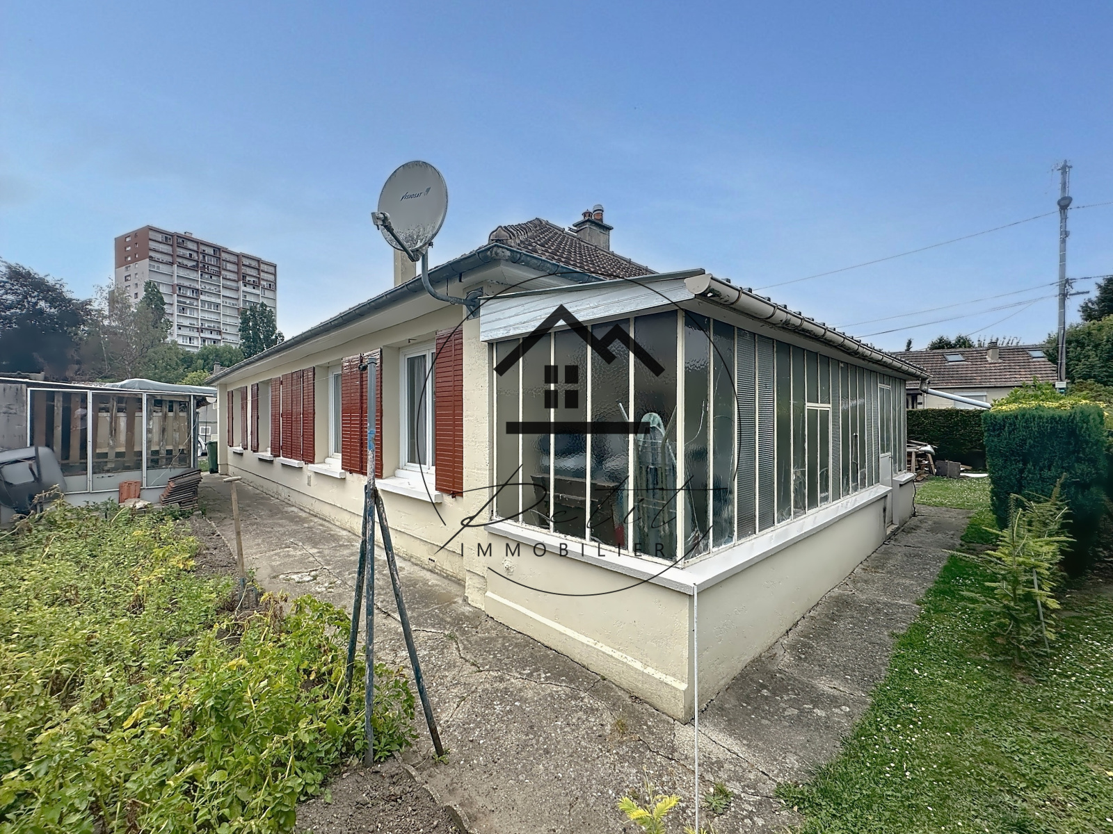 Découvrez cette maison de plain-pied idéalement située à Montataire, offrant un sas d’entrée, une entrée avec placard, un séjour/salon lumineux, une cuisine aménagée et partiellement équipée, ainsi qu’une arrière-cuisine/buanderie. La partie nuit comprend trois chambres, une salle d’eau et un WC indépendant. Deux accès véhicules sont disponibles : un stationnement extérieur et un accès direct au garage. Les équipements incluent le chauffage au gaz de ville, un poêle à granulés, des menuiseries en double vitrage PVC, un vide sanitaire, le raccordement au tout-à-l’égout, une charpente américaine en bois et une VMC. Une véranda nécessitant des travaux complète ce bien. Idéal pour une famille à la recherche de confort et de praticité.