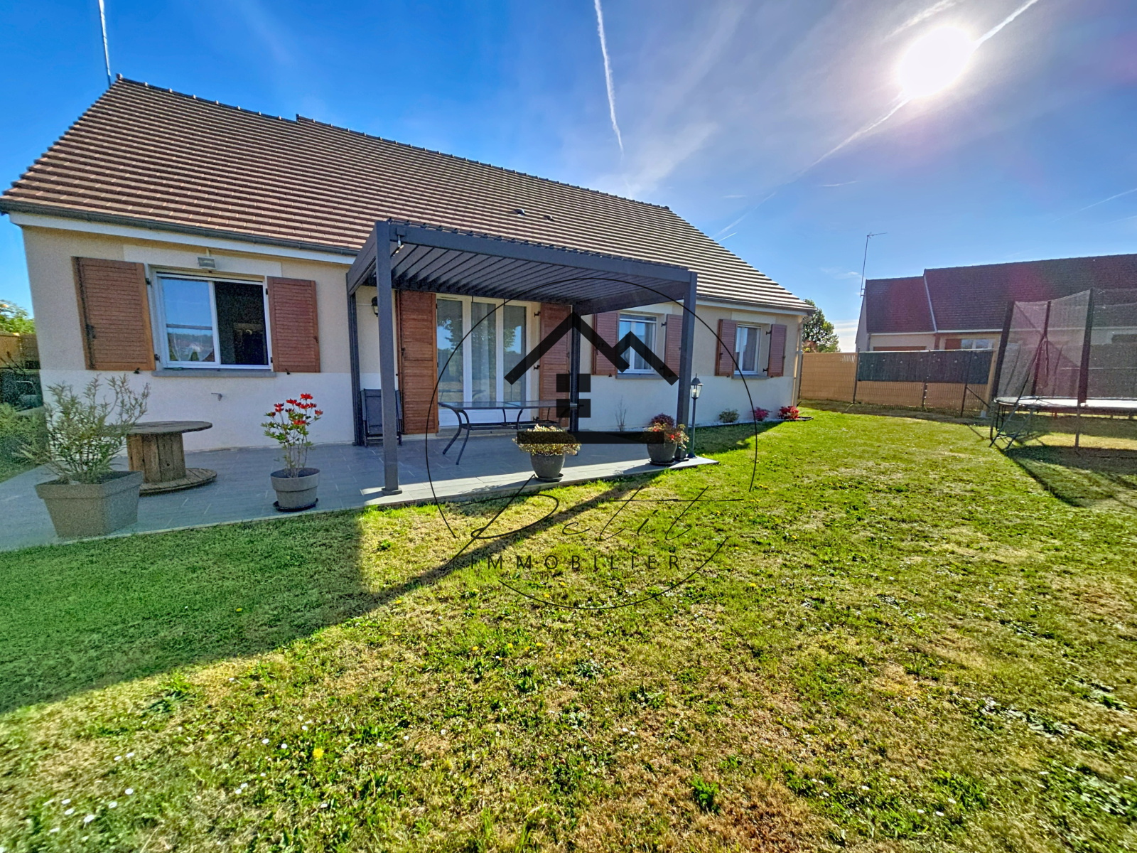 Côté extérieur, vous profiterez d’un jardin agréable, d’une terrasse avec pergola bioclimatique, ainsi que le garage.
