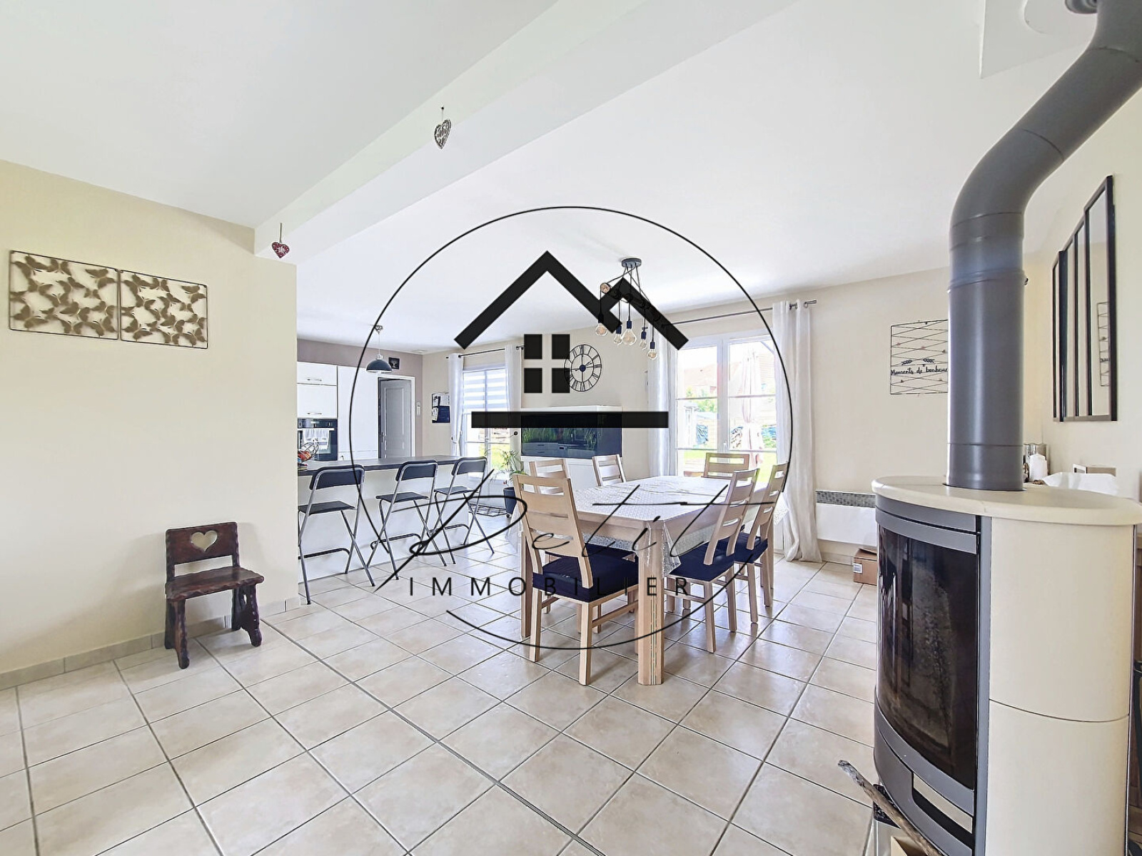 En exclusivité dans votre agence PETIT Immobilier ! Venez découvrir cette maison de 2012 vivable de plain-pied... Elle se compose comme suit : Une entrée, un séjour double avec poêle à bois pivotant, une cuisine ouverte équipée donnant sur la terrasse, une buanderie et accès au garage, une chambre avec meuble dressing et salle d'eau privative. A l'étage le palier dessert quatres grandes chambres toutes avec rangements intégré, une salle d'eau avec wc. La parcelle de terrain fait environ 580m2 Plus qu'à poser ses valises...