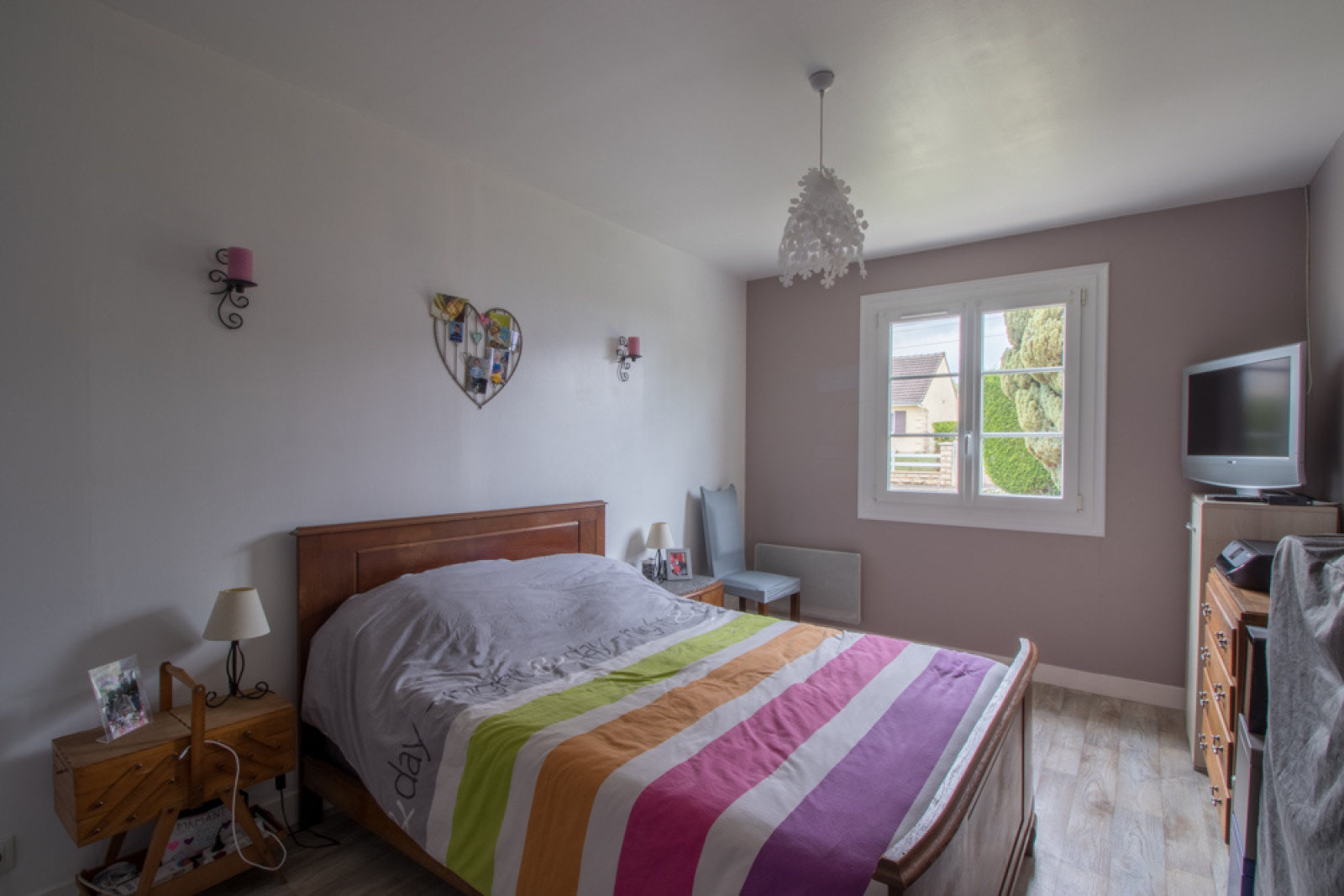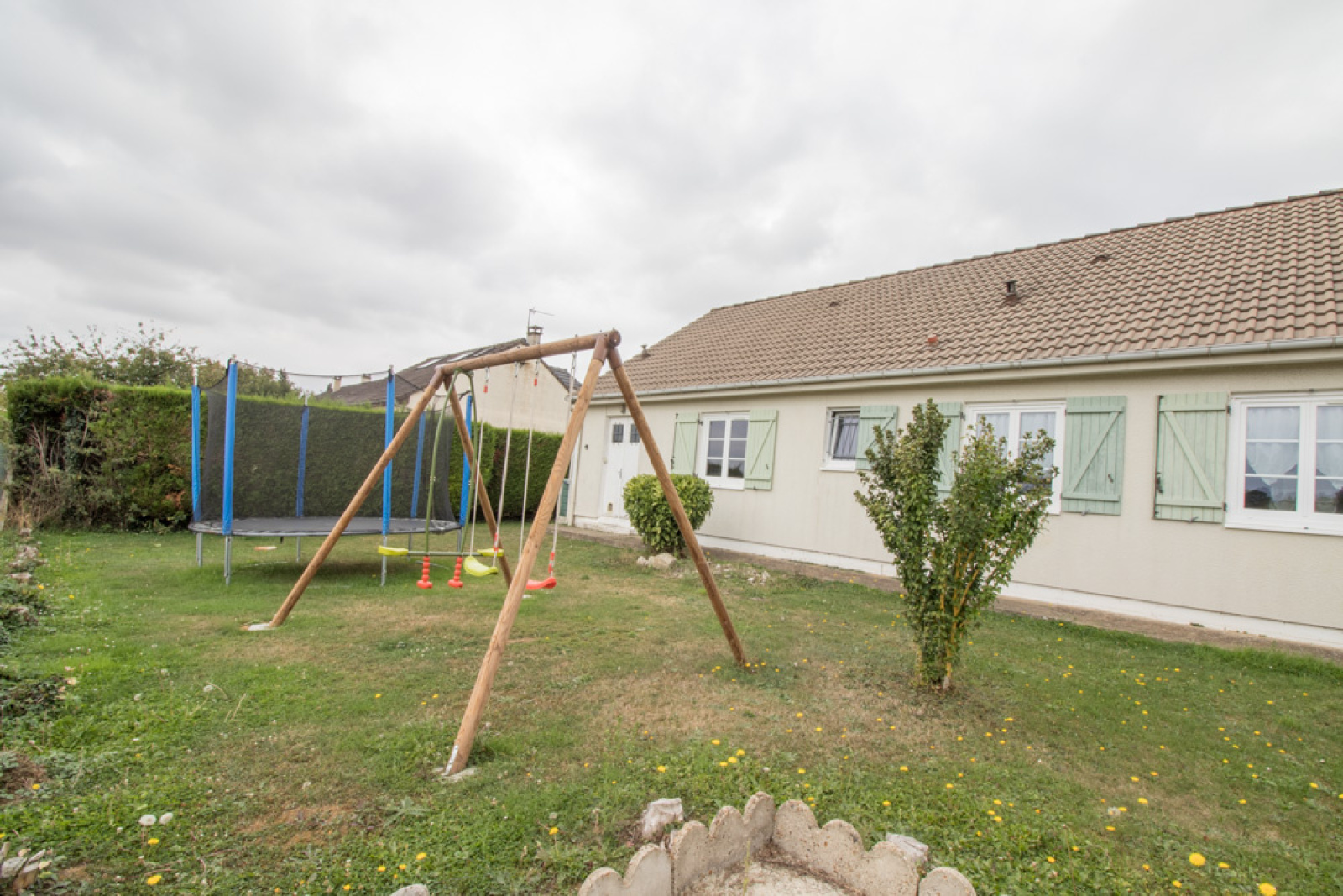 Maison de plain-pied, située dans un charmant village, composée d'un séjour double avec cuisine ouverte équipée, de 3 chambres dont une avec dressing et d'une salle d'eau et WC séparé. Le tout sur un terrain de 580 m² avec un garage et un abri de jardin.